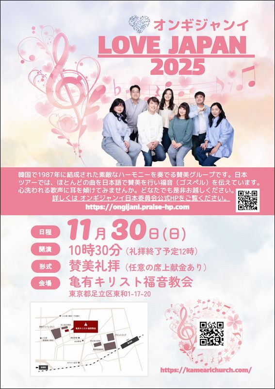 11/30(日)10:30~オンギジャンイ特別賛美礼拝のご案内